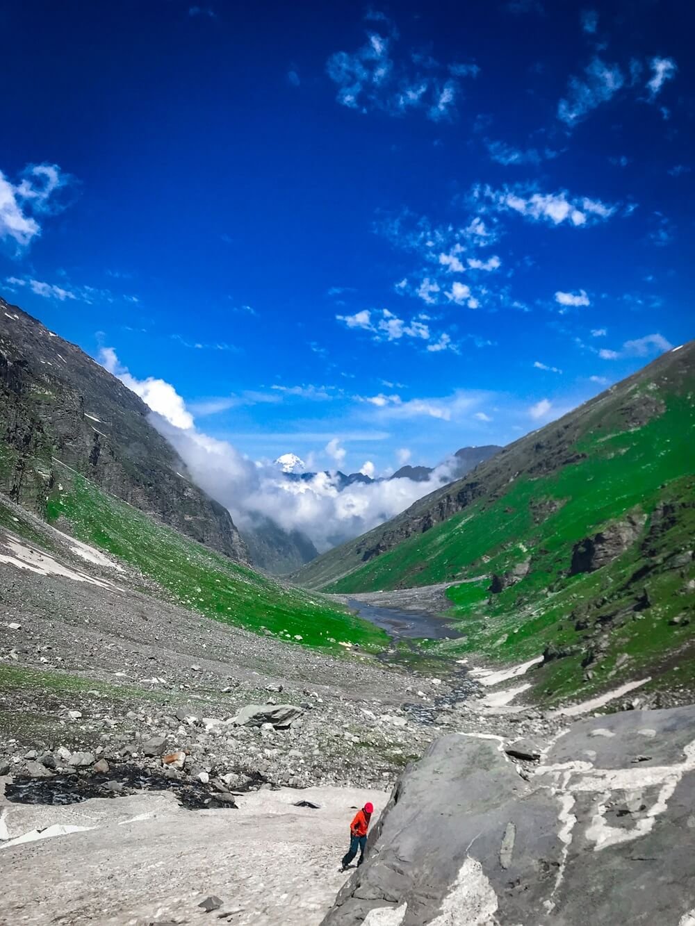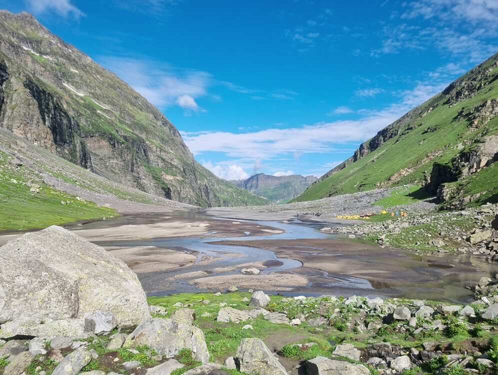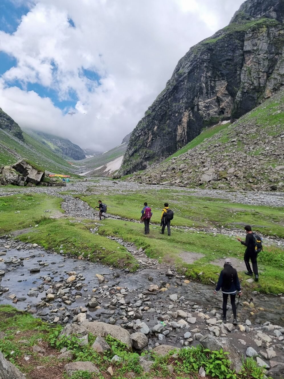 Hampta Pass is a high-altitude mountain pass in Himachal Pradesh, connecting the lush green Kullu Valley with the arid, high-altitude Lahaul Valley. The trek offers a rare cross-sectional view of two starkly different landscapes within a single trail. The journey begins in the verdant forests and meadows of Manali and ascends into the cold desert terrain of Spiti.