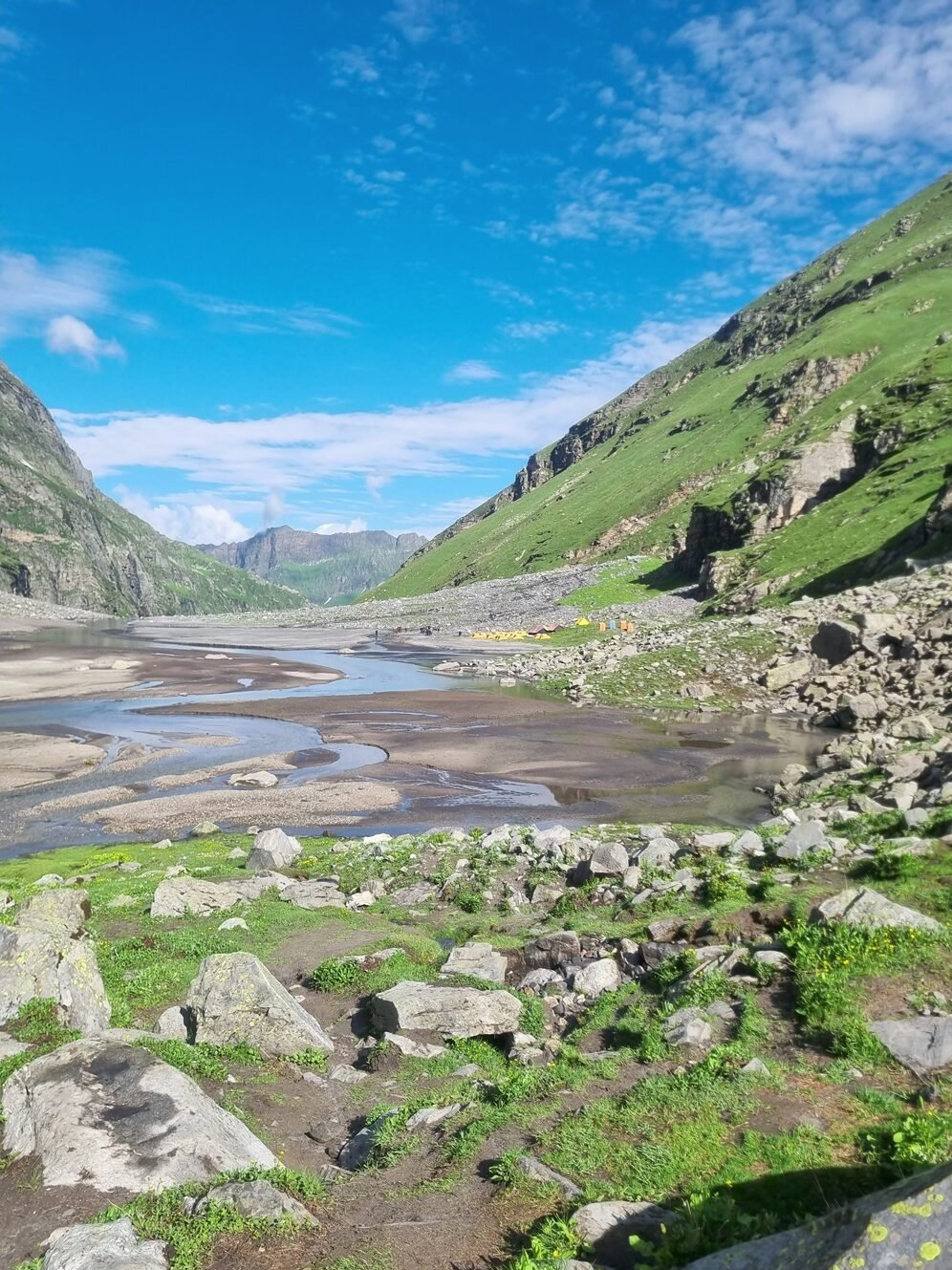 - Begin the descent from Shea Goru with a gentle trail along the river, surrounded by barren cliffs and alpine shrubs.